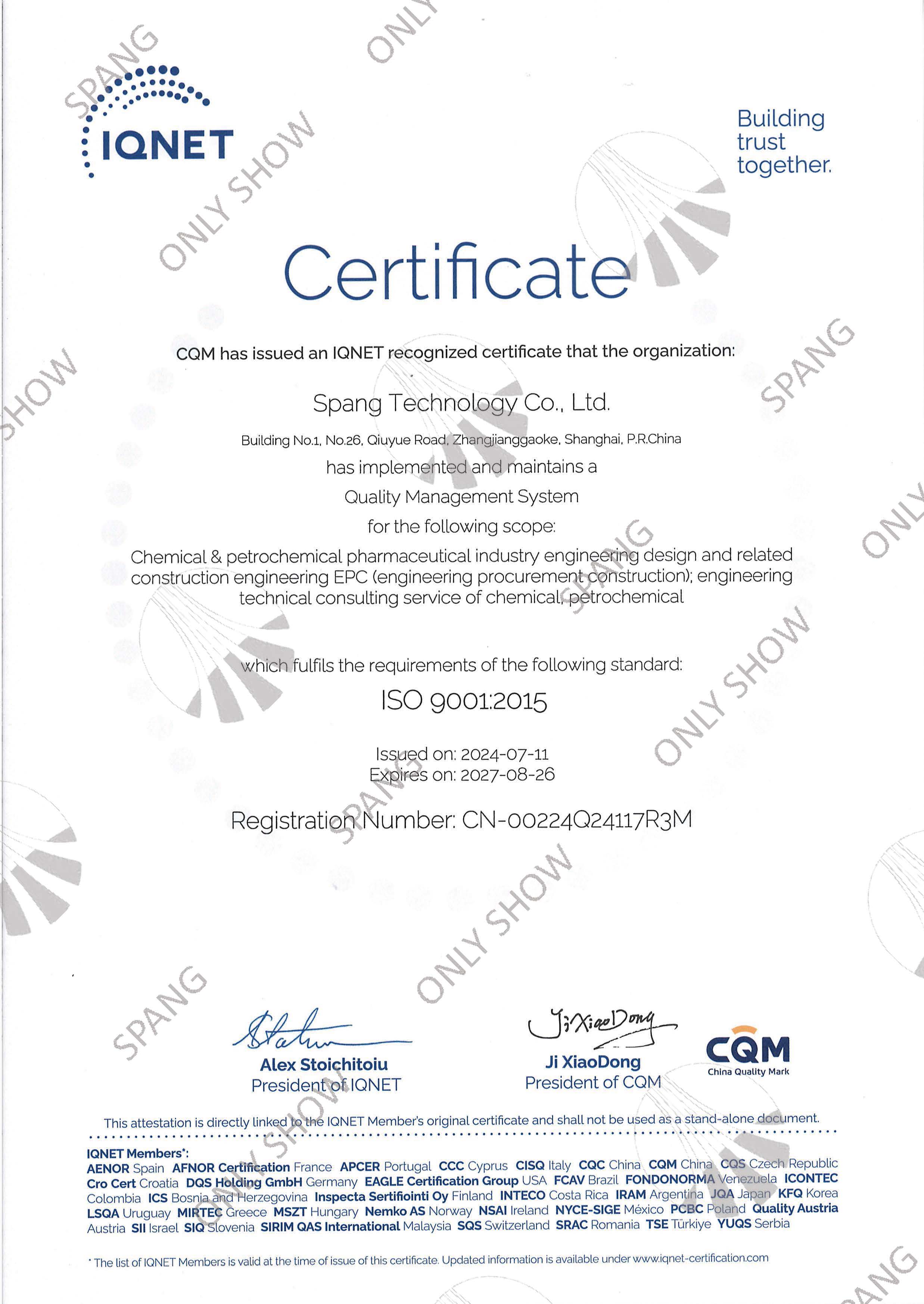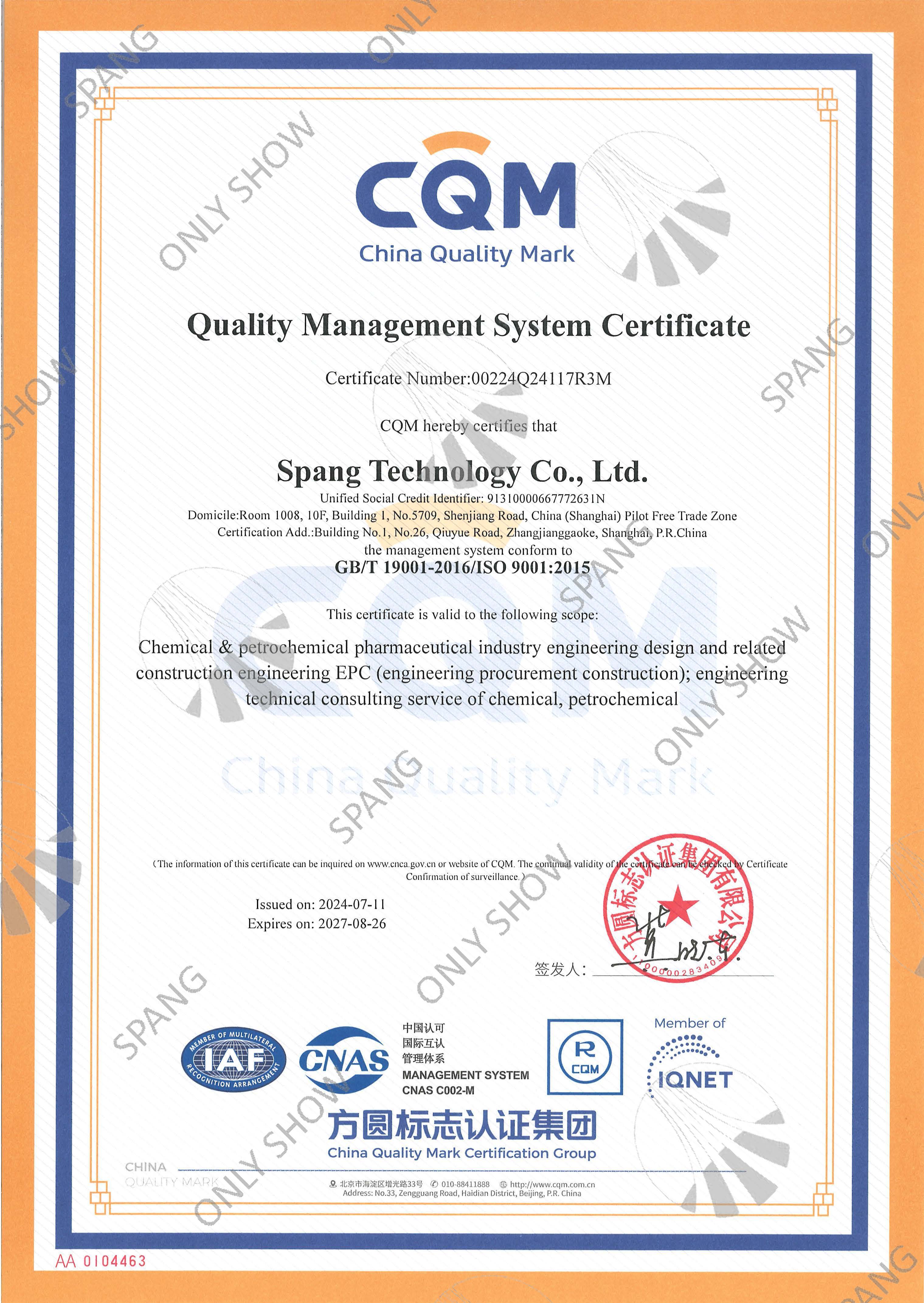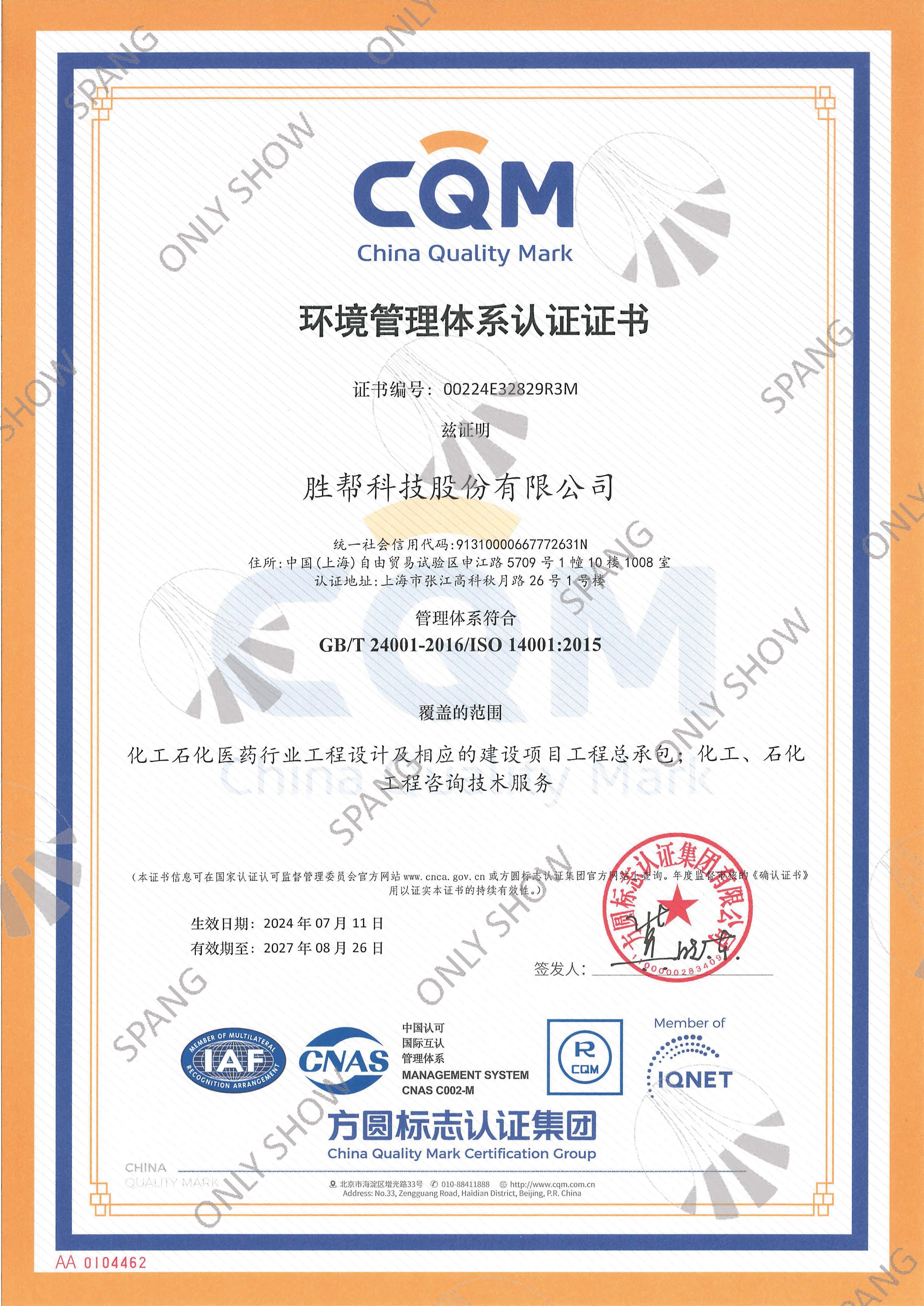工程設(shè)計(jì)資質(zhì)證書(化工石化醫(yī)藥行業(yè)(化工工程)專業(yè)甲級(jí))