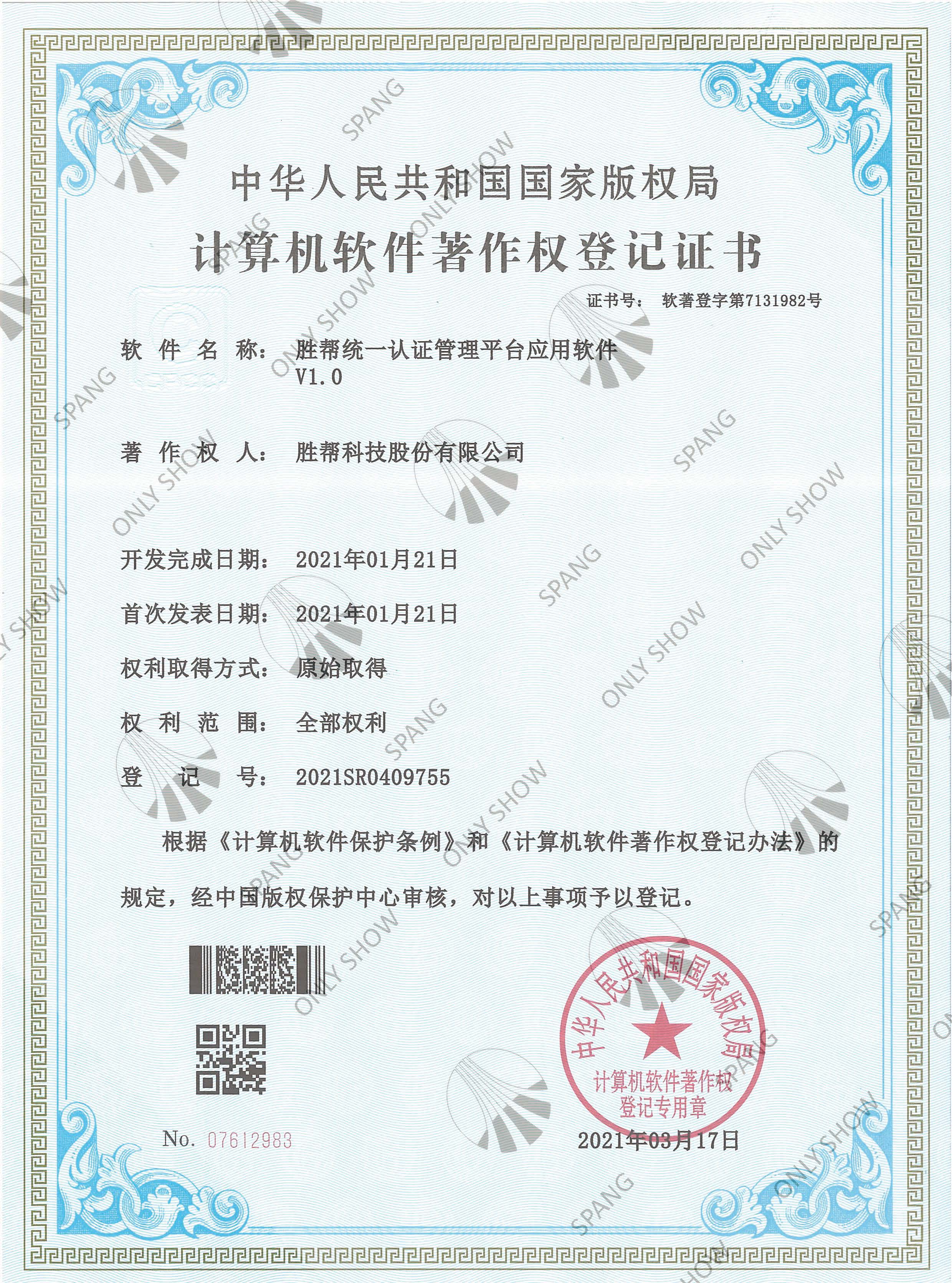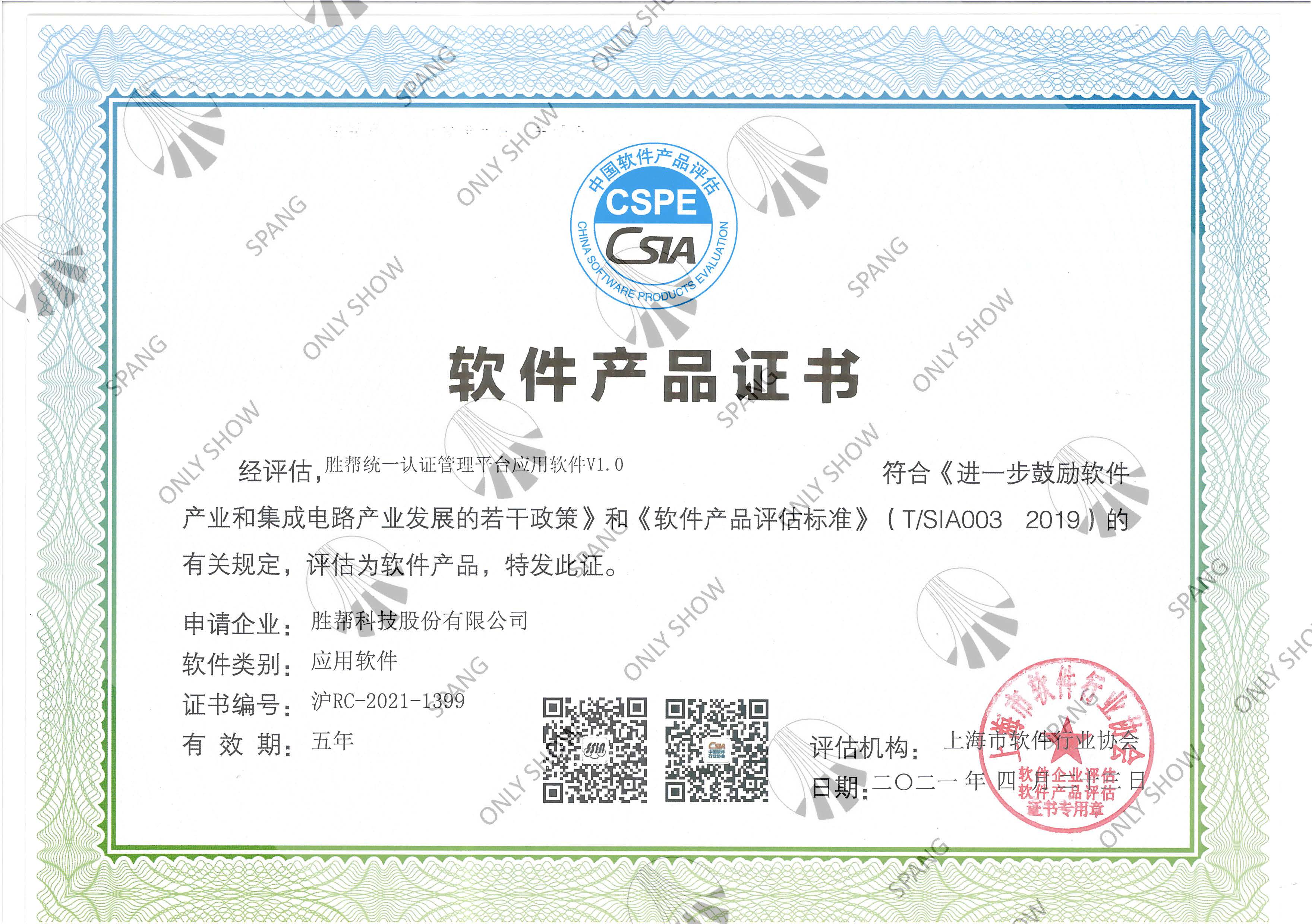 統(tǒng)一認證管理平臺應(yīng)用軟件產(chǎn)品證書