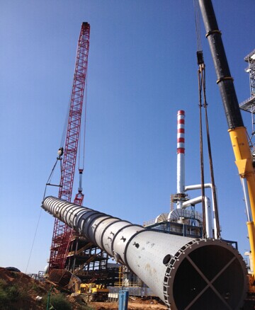 自第一臺設備進場以來,我項目部在業(yè)主、監(jiān)理的正確指導和大力幫助下,大型設備吊裝工作順利推進,隨著2014年9月20日“兩塔一罐”(焦化分餾塔、加氫分餾塔、焦化緩沖罐)精確就位,400噸吊車開始退場,預示著全場大型設備吊裝工作圓滿結束。本工程大型設備數(shù)量多,吊裝工作量大,框架內重型高壓設備復雜,設備平面布置緊湊。焦化分餾塔高61米,總計130余噸,吊車占位空間窄小,…