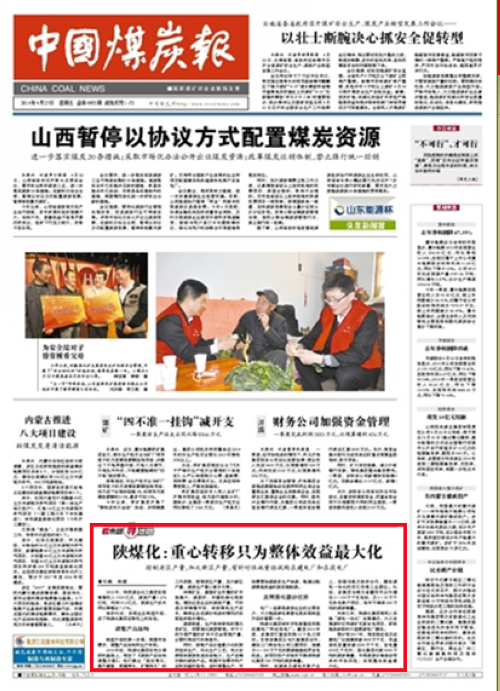 中國煤炭報:2014年4月25日 第1版陜煤化:重心轉(zhuǎn)移只為整體效益最大化控制老區(qū)產(chǎn)量,加大新區(qū)產(chǎn)量,有針對性地重組收購在建電廠和在役電廠 2013年,陜西煤業(yè)化工集團(tuán)實現(xiàn)銷售收入1505億元,煤炭產(chǎn)量1.276億噸,利潤10.2億元,原煤生產(chǎn)成本同比降幅達(dá)7.27%。練好內(nèi)功,實現(xiàn)企業(yè)轉(zhuǎn)型升級,成了陜煤化集團(tuán)逆勢而上的法寶。調(diào)整產(chǎn)品結(jié)構(gòu)轉(zhuǎn)型升級的第一步是,根據(jù)市場需求,調(diào)整產(chǎn)品結(jié)…
