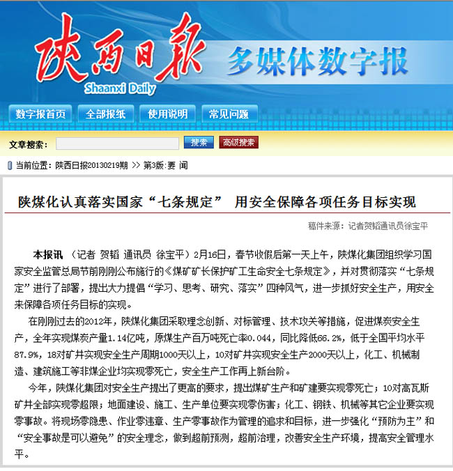 陜西日報2013年2月19日第三版 省國資委網(wǎng)站鏈接 http://www.sxgz.gov.cn/admin/pub_newsshow.asp?id=1005615&chid=100196