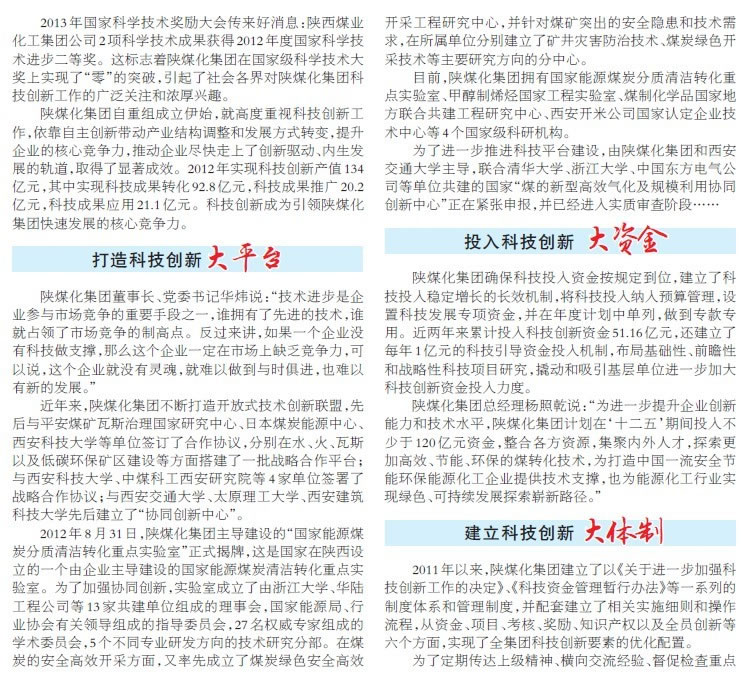 光明日?qǐng)?bào):陜煤化集團(tuán)科技創(chuàng)新引領(lǐng)跨越發(fā)展