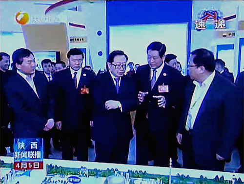 陜西電視臺4月5日晚陜西新聞聯(lián)播報道西洽會開幕,圖為領(lǐng)導(dǎo)視察陜煤化集團展區(qū)鏡頭