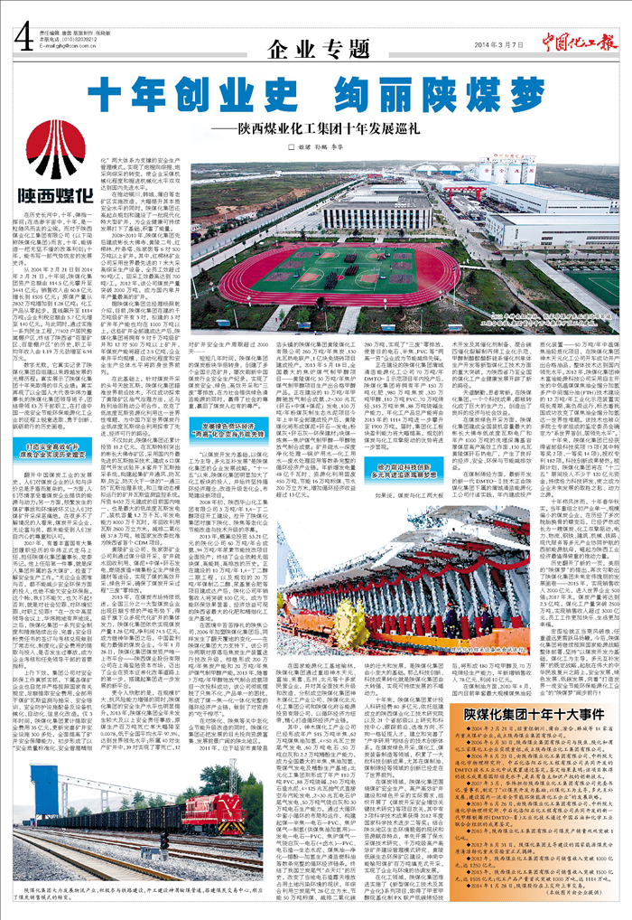 中國(guó)化工報(bào):十年創(chuàng)業(yè)史 絢麗陜煤夢(mèng)
