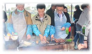有經驗的“大廚”紛紛搶當爐頭,躍躍欲試,招攬“顧客”,瞧這幾位,那是相當專業(yè),不僅有賣相,肉串烤得也非常棒,香酥可口。除了燒烤當然還有娛樂活動啦——麻將、撲克全上陣啦。