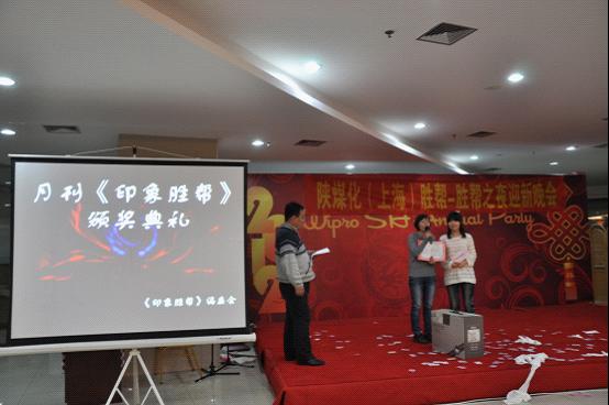 第二篇自娛篇,在一部勝幫自編自導(dǎo)自演的微電影形式下,勝幫重量級的F4以賭神的裝扮神秘登場,同時以歌曲《流星雨》+《真心英雄》娛樂了自己,歡樂了現(xiàn)場。隨后在007的音樂下施工管理部的趙鐵楠同志閃亮登場,以幽默風(fēng)趣的開場詞介紹了自己,介紹了來自陜煤化集團(tuán)公司財務(wù)處長、上海勝幫財務(wù)總監(jiān)王曉剛先生和產(chǎn)業(yè)公司黨委副書記、上海勝幫董事朱保平先生。在歡快幽默的氣氛下,主持了《印象勝幫》年度頒獎典禮,共頒出了4個大獎,分別是年度最佳撰稿人、年度攝影大師獎、年度詩歌創(chuàng)意獎、年度最佳通訊員。